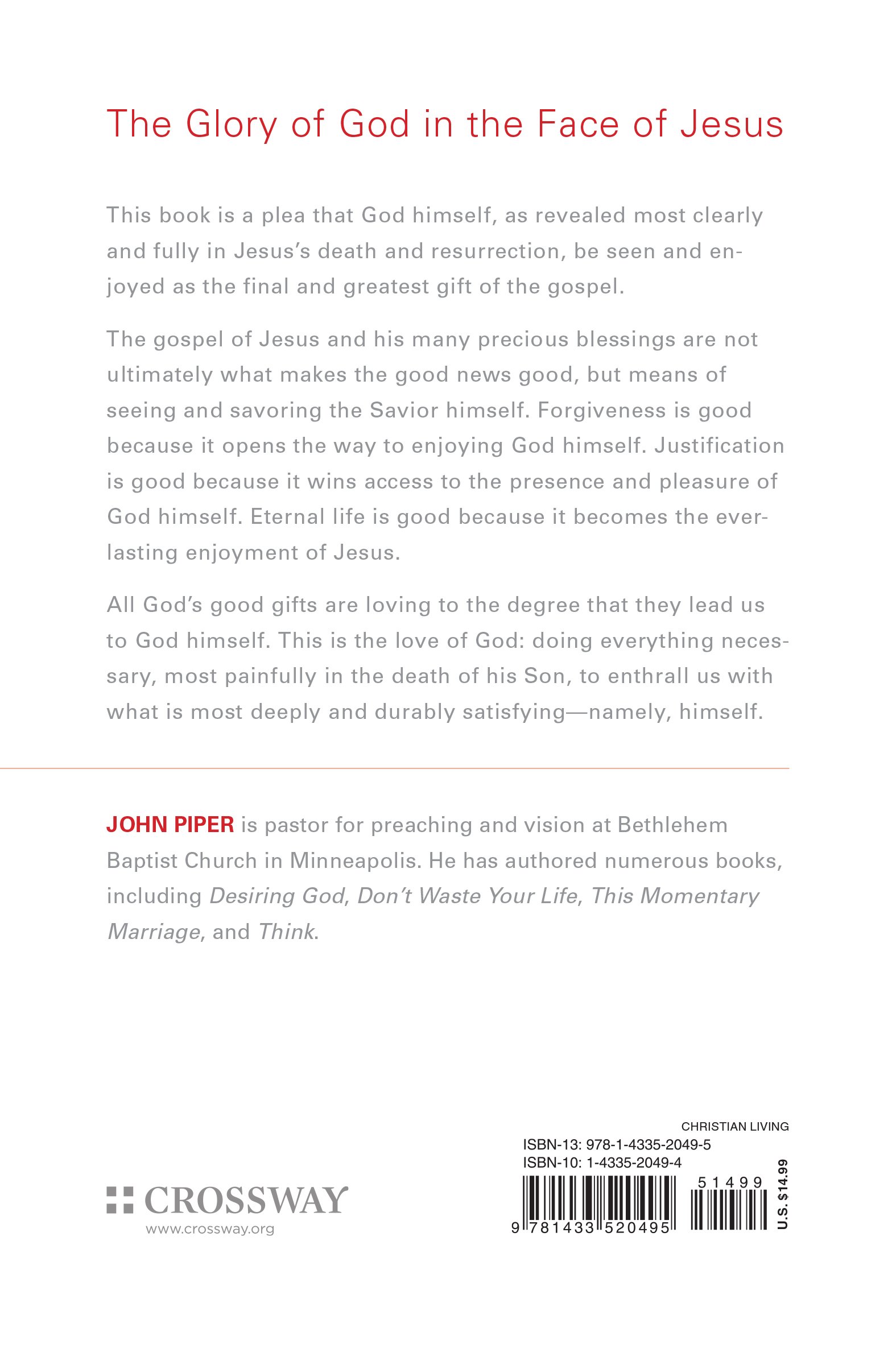 2 Corinthians 46 This book is a cry from the heart of John Piper. The gospel of Jesus and his many precious blessings are not ultimately what makes the good news good but means of seeing and savoring the Savior himself.